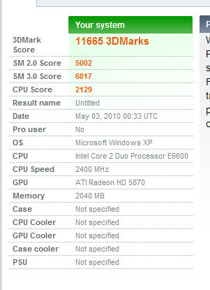 今回のRADE-HD5870は11665ptということで性能はそれなりにあがってます。
