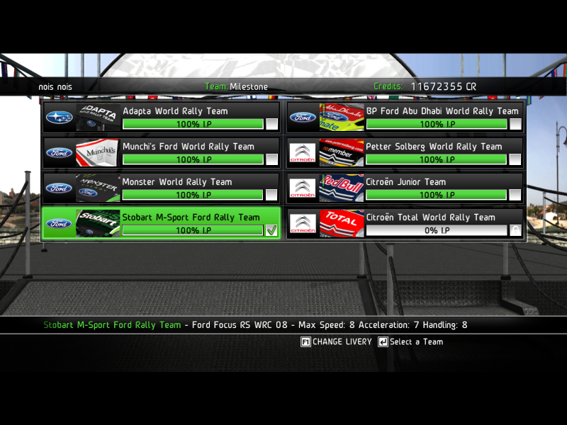 地道に進めているWRCキャリアモードですが、全チームアンロックまで あと1チームというとこまで・・・ 現在Lvl10-1のWRCシリーズイベントの第2戦(全13戦中)が終了したとこ (各Lvlとも6イベントづつある感じ) このシリーズ戦が終われば ”何々チャレンジ”とかの単戦とかが5つほど残ってる感じ それでキャリアモードは終了?と思われ・・る?? まぁ 一段落までもう少しだ~